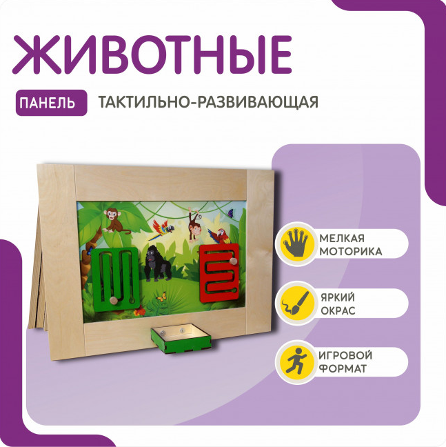 Погрузитесь в атмосферу джунглей вместе с тактильно-развивающей панелью! Какой ребенок не мечтает попасть в джунгли, где все покрыто зеленью и на деревьях живут обезьяны и попугаи? Теперь у него есть такая возможность – перемещать игровые элементы по лабиринту на панели, создавая свой собственный джунглевый мир. А в процессе игры он будет развивать мелкую моторику, координацию движений и тактильные ощущения, что несомненно положительно скажется на его будущем.