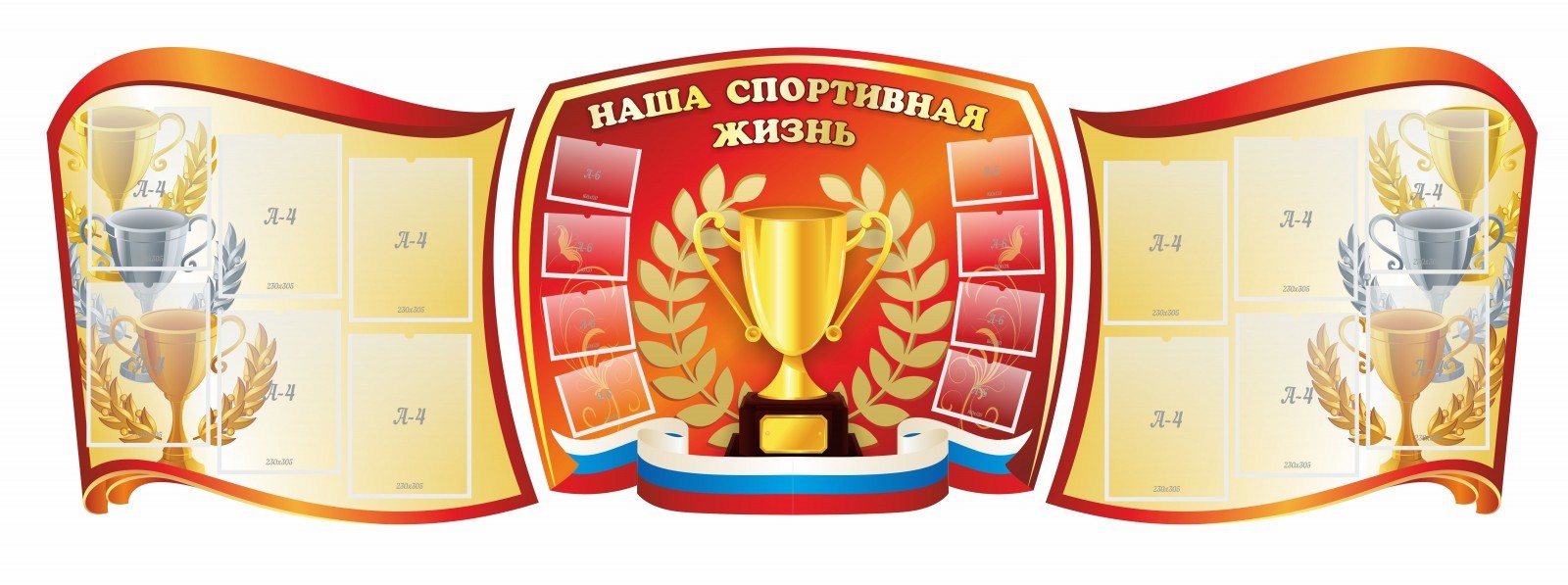 Стенд "Наша спортивная жизнь" (резной стенд из 3-х частей)