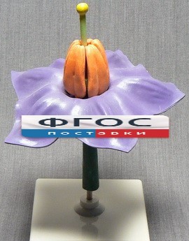 Данная модель дает возможность рассмотреть следующие детали цветка Пасленовых: цветоножка, цветоложе, сростнолистная чашечка, сростнолепестный венчик, тычинки, пестик.
