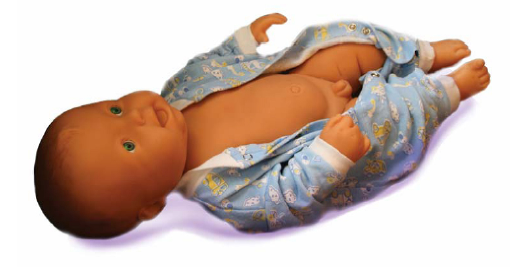 Сразу после включения робота его губы и носик синеют и младенец начинает сипеть и хрипеть. Если в течение 30 секунд не извлечь инородное тело из ротовой полости, то его лицо побледнеет и исчезнет пульс на плечевой артерии.